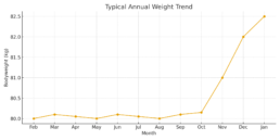 From February through early October weight stays fairly stable or for some, there is a slow increase across that period.